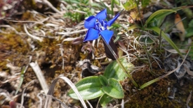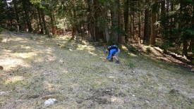 Nous contournons le chalet et retrouvons une des combes parallèles au pâturage par laquelle nous passons souvent. D’ailleurs, nous constatons que la poignée orange que nous avions posée l’année passée pour faciliter le franchissement d’une clôture est toujours là. Chic.