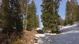 Dès que nous rentrons dans la forêt après avoir passé la gouille au Cerf, la neige devient omniprésente.
