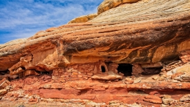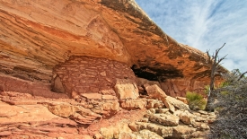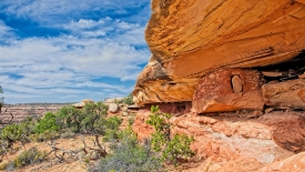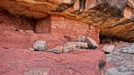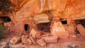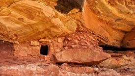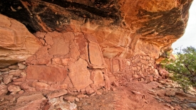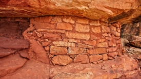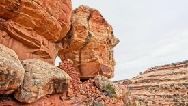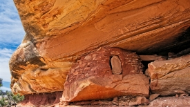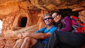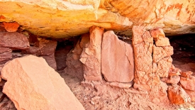Nous avons très vite repéré ce mur. Nos yeux sont maintenant bien exercés. Nous avons d’abord été alertés par ce bloc rocheux, qui ressemble à une tête. Nous avons pu déduire de nos nombreuses explorations et trouvailles que les Native Americans étaient attirés par ce type de relief. Maintenant que nous sommes là, nous repérons, de l’autre côté du canyon, sur la paroi opposée, un, voire deux sites de ruines. La journée promet d’être magique.