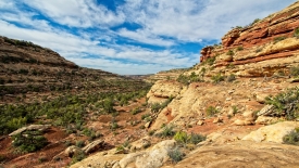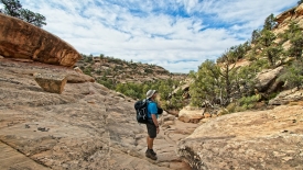 Nous sommes bien décidés à ne pas suivre le chemin qui nous a mené ici afin de trouver un passage plus accessible. Car nous avons bien l’intention, un jour, de conduire ici nos amis Les P’tits Loups. Nous crapahutons sur le sommet de la mesa et parvenons à redescendre, easy peasy, dans The West Fork of Johns Canyon.