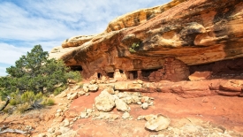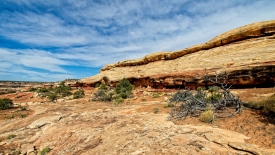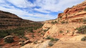 Nous quittons l’hôtel vers 7h en direction de la Kane Gulch Ranger Station, que nous passons sans nous arrêter. Je jette un regard curieux et constate que le parking longue durée est à moitié plein. Nous imaginons tous ces randonneurs au fond du Grand Gulch, sacs de backpacking sur le dos, en train de profiter de la quiétude et de la magnificence des lieux. Le parking courte durée est également bien occupé, en partie par ceux qui sont venus chercher un permis pour aller voir The Moon House. Environ 9 à 10 kilomètres après la Ranger Station, nous quittons la UT-291 pour une piste qui part vers l’ouest. Après quelques kilomètres, nous garons la voiture, non loin de là où commence une des branches du Johns Canyon, la West Fork.