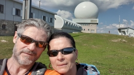 Une de mes rares photos : aujourd’hui, nous avons pris nos bâtons. Avec la chaleur et le contact des paumes sur la poignée, nos mains sont poisseuses et collantes. Je n’ai pas envie de les coller sur mon appareil photo. C’est Stefano qui se dévoue pour la suite.