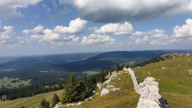 Passé Potraux, nous sortons progressivement de la forêt et bientôt La Dôle apparaît. Et la grande muraille de Chine.