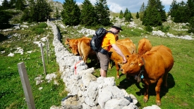 Le passage du mur doit se négocier. Les vaches ne cèdent pas un pouce de terrain.