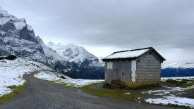 La première chose que nous faisons, une fois arrivés à Grosse Scheidegg, est de nous couvrir. Layer up, layer up! La seconde est de prendre quelques photos, histoire de partager l’atmosphère. Non, je ne suis pas en mode monochrome. J’ai même un clic de plus de saturation.