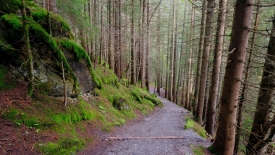 Nous nous réfugions sous un avant-toit de chalet, à Grindel Oberläger. Nous regardons la pluie tomber une dizaine de minutes espérant une éclaircie qui tarde à venir. Résignés, nous repartons par la route en direction de First.