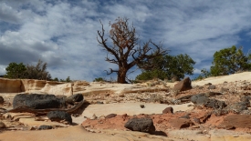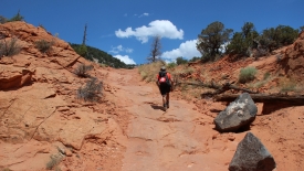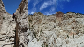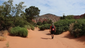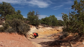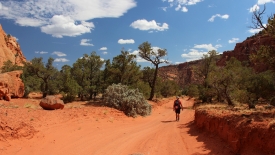 Aujourd’hui, nous allons user nos semelles sur un tout petit bout du Great Western Trail près de Torrey, puis bifurquer à un moment donné pour aller voir un endroit qui porte le doux nom de Hell’s Hole, à savoir une gorge profonde d’où la ville de Torrey tire son approvisionnement en eau.
