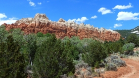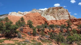 Les roches sont en majorité de coleur rouge avec des couches blanchâtres. C’est par là que nous nous dirigeons. J’en suis ravie…