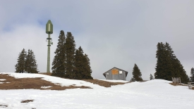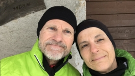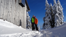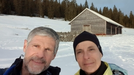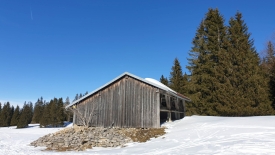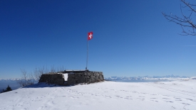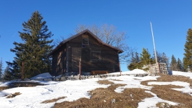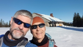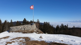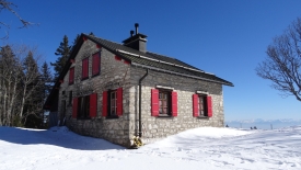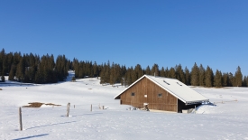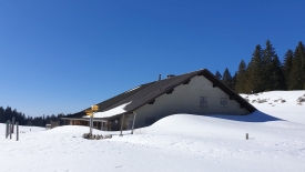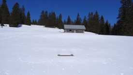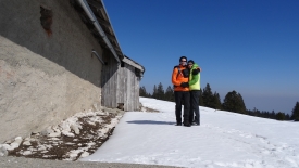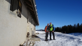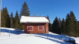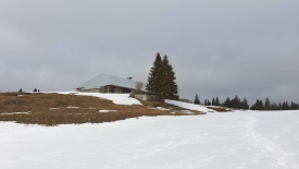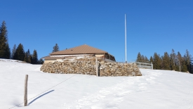 Au Col de Porte, vers la cabane du ski club de Nyon. Nous nous sommes abrités contre le mur, le temps de manger une barre.