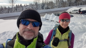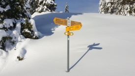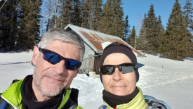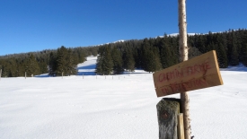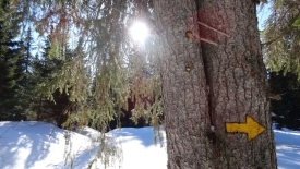 Inutiles de dire donc que nous sommes tout seuls car ce n’est simplement pas vrai. Le départ des sentiers raquettes et pistes de ski de fond sont bien colorés.
