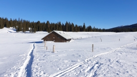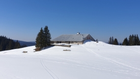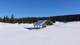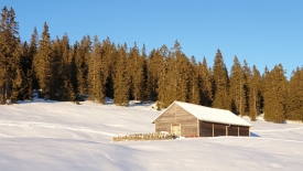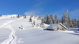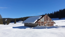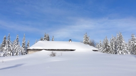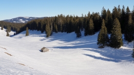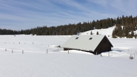Ayant rejoint la route, nous passons de l’autre côté de la crête pour arriver au chalet Le Bouvreuil.