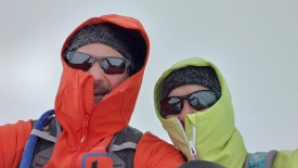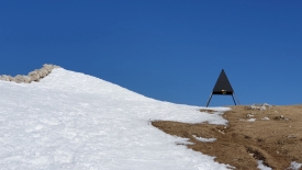 Nous arrivons au sommet en même temps qu’un couple qui décide de préparer une fondue sous le point géodésique.