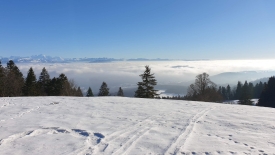 Vu que le ciel s’est vraiment éclairci, Stefano me propose même une « vraie » randonnée en bas du Jura, afin d’éviter la brume. Nous nous préparons donc et sans trop savoir ni pourquoi ni comment, la voiture nous emmène à St-Cergue, près du camping. C’est une de ces journées où elle prend les commandes.