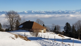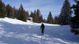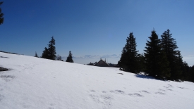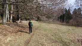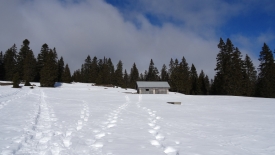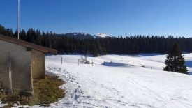 Personne ne s’est aventuré derrière le chalet, en direction des Monts de Bière derrière. C’est pourtant là que nous voulons aller.