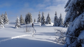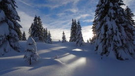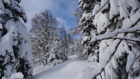 A deux ou trois reprises, des sapins, taquins, se déchargent de leur neige à notre passage.