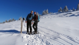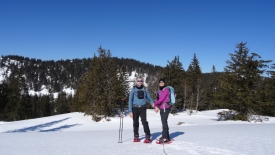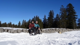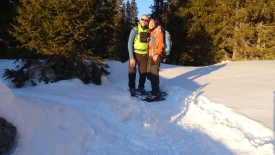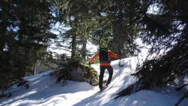 Les raquettes se révèlent extrêmement faciles à régler et à attacher. Les premiers pas sur la neige nous procurent de belles sensations. Il faut dire que la neige est dure, facilitant la marche.