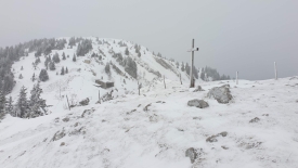 Le sommet est balayé par de méchantes rafales de vent, accompagnées d’un petit grésil qui agresse les parties du visage non protégées. Nous ne traînons pas une minute et repartons par le même chemin, encore surpris de la tournure prise par notre tour de quartier.