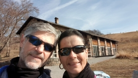 C’est plus ou moins là que nous croisons un randonneur à ski. Nous discutons un moment. Ce n’est qu’en repartant qu’une des phrases qu’il a dite me revient et je demande à Stefano : a-t-il bien dit qu’il nous connaît de notre blog et qu’il nous suit ? Stefano lève un sourcil, puis un autre et me répond par la négative. OK, j’ai donc dû rêver. Mais néanmoins le doute subsiste.