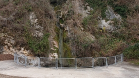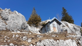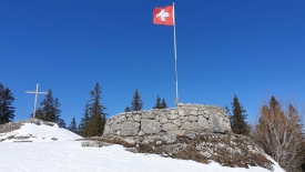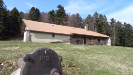Et là, c’est la totale : le mur, le point géodésique (sous lequel nous visualisons nos deux randonneurs en train de tremper le pain dans le fromage fondu) et le couvert (pas le couvert à fondue, le couvert à bétail !).