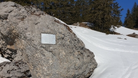 En contrebas de Pierre à Coutiaux, cette plaque en souvenir de Fritz Bühler, père de la Garde Aérienne Suisse de Sauvetage (REGA).