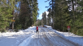 Retour sur la route, transformée en piste de ski de fond pour l’hiver. Nous n’y voyons personne.