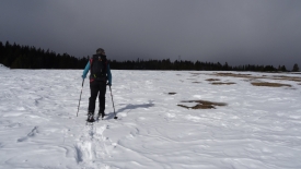 Nous restons sur la crête pour être certains de ne pas pénétrer dans la zone de tranquillité qui semble bien malmenée, au vue de la présence des nombreuses traces.
