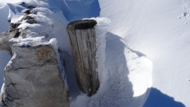 La neige s’est un peu transformée par endroit. De la parfaite neige poudreuse, légère et fine, nous passons à de la neige dure et verglacée.