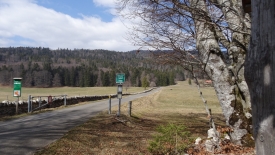 Au sortir de la maison, nous faisons le tour complet du rond point le temps de décider de la direction à prendre. Vers St-Cergue ? Vers le col du Marchairuz, comme hier ? J’avais émis le souhait de pousser jusqu’au col du Mollendruz mais il aurait fallu partir plus tôt, beaucoup plus tôt. Le tableau de bord affiche 10h04. Craignant que le parking de La Givrine ne soit bondé, nous optons pour la sagesse : direction le col du Marchairuz. Et première de la saison, nous nous arrêtons au Pré d’Aubonne.