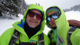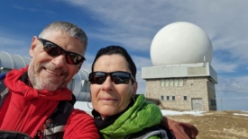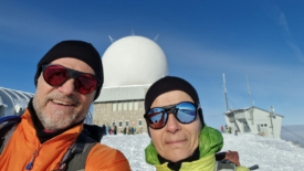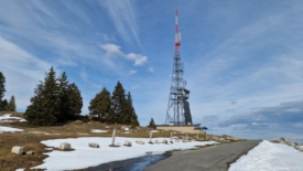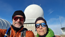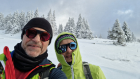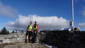 Nous choisissons de rejoindre l’antenne par la route. Une fois n’est pas coutume. Nous y croisons encore une fois (!) mon ancien collègue Serge et son complice Raphaël. Ils roulent sur la neige tassée mais nous confient que, un peu plus bas, sur les hauts de La Rippe, la route est verglacée et le passage délicat.