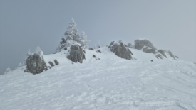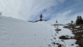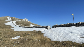 La voici d’ailleurs, la pointe de Fin Château. Les taches d’herbe sont plus importantes que celles de neige.