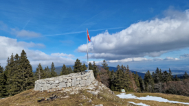 L’arrêt suivant se fait à au pré de Joux. C’est assez rare que nous passions par là. Le drapeau a vu des jours meilleurs.