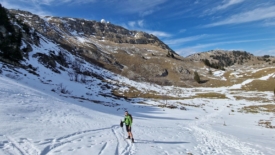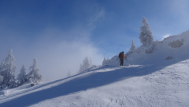 Avant le confinement, il n’était pas rare de faire nos traces ici. Aujourd’hui, les pentes sont striées de traces de toutes sortes. Les pistes de ski fermées durant l’hiver, les stations françaises voisines éteintes avaient alors poussé les amateurs de ski à trouver d’autres itinéraires.