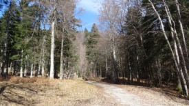 Départ du parking de la colonie de vacances des Plattets pour arriver, en première étape à Le Vaud par une piste forestière bien sèche, contrairement à la mare de boue de la dernière fois.