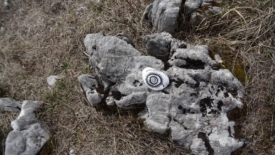 Une jolie pierre décorée, sur le bord du sentier.