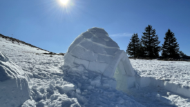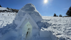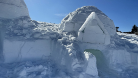 Repérés depuis le sommet, nous nous approchons d’igloos, un peu en contrebas du chalet de Yens.