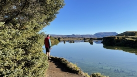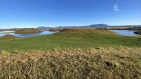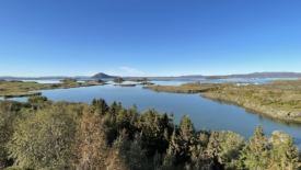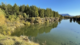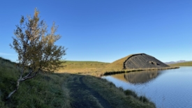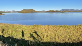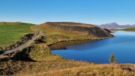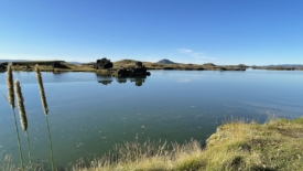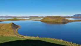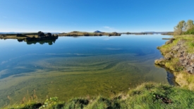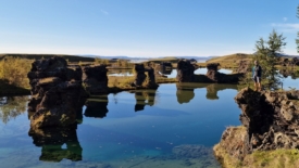 Pour rentrer à Stöng, nous prenons le chemin des écoliers et bouclons le tour du lac Mývatn. Deux arrêts sont prévus. Le premier nous permet de découvrir Höfði, un ancien jardin privé, transformé en réserve naturelle. Au second – Skútustaðagígar – nous nous approchons de pseudo-cratères, formés par la lave, et recouverts de verdure.