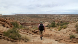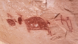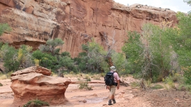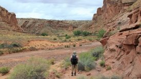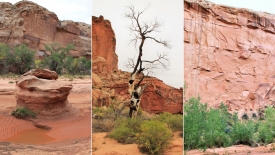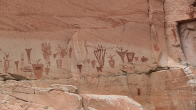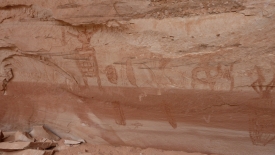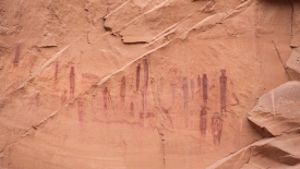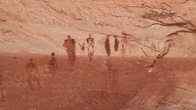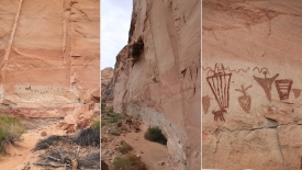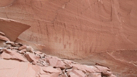 L’objectif de la sortie est certes de marcher dans un canyon (1), de photographier des arbres morts (2) mais surtout d’admirer des pictogrammes et des pétroglyphes, dont le fameux mur Great Gallery qui doit clôturer la marche du jour et à partir duquel nous ferons demi-tour.