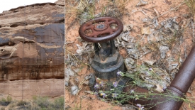 Nous retrouvons LE tuyau. Non loin de l’endroit où nous avons garé la voiture, soit près de 250 mètres au dessus de nos têtes, se trouve un réservoir et un cabanon contenant une pompe. L’idée était de pomper l’eau du wash afin d’abreuver le bétail.