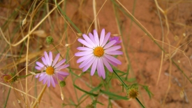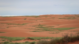 Des dunes de sables rouges égayent l’horizon, ça et là.