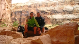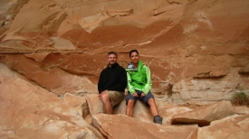 Nous dépassons deux personnes (les deux mates) errant sur les rochers, à l’arrêt. Nous pensons un moment qu’elles sont perdues, mais non, tout va bien (nous nous rendrons compte plus tard qu’elles recherchaient l’emprunte d’un dinosaure, un des points d’intérêt du site). Nous arrivons sur le rim trempés mais ravis de l’aventure. Nous échangeons encore quelques mots avec cette dame bien sympathique, puis avec la ranger, remontée quelques minutes après nous.