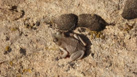 Une petite grenouille qui l’a échappé belle. La chaussure de Stefano est passée à quelques millimètres. Heureusement, elle est indemne.