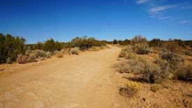 Le sentier se transforme en piste, piste qui rejoint la UT-10 au bout de trois kilomètres, rendant ainsi le site accessible à plus de monde. Néanmoins, le parking est vide.