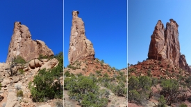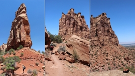 Et des pitons rocheux, y’en a ! Un p’tit coup d’œil derrière nous, et voici le Indepedence Monument, au centre, avec ses copains…