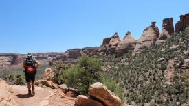 Pas de boucle aujourd’hui. Nous démarrerons le sentier du côté Lower Monument Canyon et terminerons par le Upper Monument Canyon avant de redescendre. À mi-chemin, nous passerons à proximité du fameux Independence Monument. Beau programme, non ?