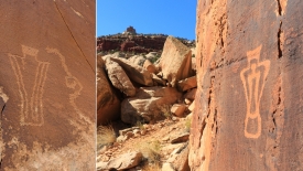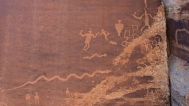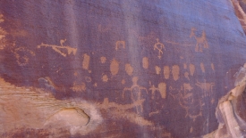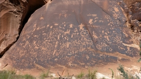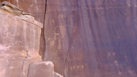 Nous profitons de quelques heures gagnées sur notre voyage pour aller enfin découvrir les pétroglyphes d’Indian Creek. D’habitude nous nous contentons d’y passer en admirant ses falaises rouges. Cette fois, Indian Creek est l’objectif de notre balade.