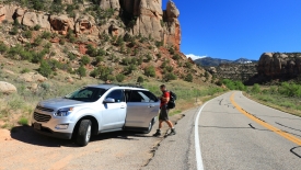 Ah, l’aéroport de Durango… Un vrai bonheur. Deux portes d’embarquement, un tapis roulant unique pour les bagages et les comptoirs de location de voiture dans le même hall. En 10 minutes, nous avions tout fait et découvrions notre carrosse pour les prochains 7 jours : une Chevrolet Equinox, 4×4, qui après quelques kilomètres s’est révélée faire plutôt partie de la catégorie charrette. Mais bon, comme dit Stefano, elle roule et cerise sur le gâteau, l’abonnement Sirius XM est valide. Nous allons donc pouvoir écouter notre chaîne préférée, la BPM 51. Cool.