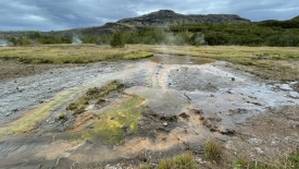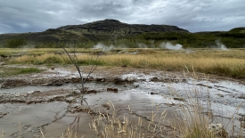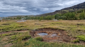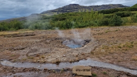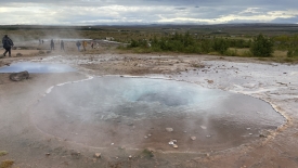 Alors que nous nous dirigeons vers Geysir, le geyser le plus populaire de la zone puisqu’il a l’extrême bonté de jaillir environ toutes les 4 à 6 minutes, Luana nous raconte une de ses aventures. Nous partons tous dans un fou rire irrépressible. Le fond de l’histoire est plutôt dramatique. Mais sa façon de la conter la rend extrêmement comique. Entre Voie Verte, Toi Toi, Lison et envie incontrôlée ou incontrôlable, nous rions aux éclats en attendant que le geyser veuille bien se réveiller.