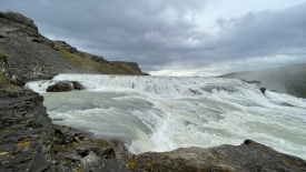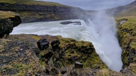 Le bruit est assourdissant. Gullfoss est composée de deux décrochements, le premier de 11 mètres de haut, le second, plus impressionnant, de 21 mètres. L’eau, après sa première chute, a à peine le temps de se calmer avant d’être entrainée dans la seconde cataracte.