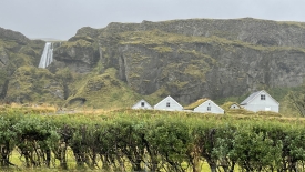 Descendant vers le sud par la route n° 30, nous rejoignons la route n° 1. Les paysages sont moins lunaires. Des champs, d’un vert quasi fluorescent, bordent la route. Sur certains, des balles de fourrage éparpillées, enrobées de plastique bleu, blanc, ou même rose, leur donnent un air de jeu de société abandonné. Les autres, la majorité, sont pâturés. La toison des moutons et des brebis est si épaisse qu’ils ressemblent à des barriques. L’herbe est si haute qu’elle oblitère leurs courtes pattes. Noirs ou blancs, ils dessinent d’immenses plateaux de jeu de dame.