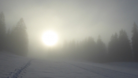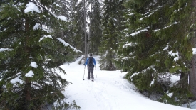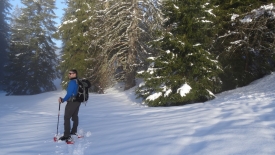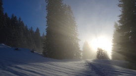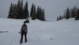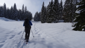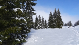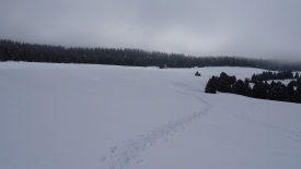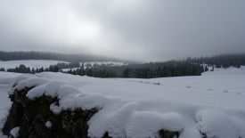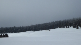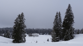Les places de parking se paient très chères au Col du Marchairuz. Nous sommes obligés de descendre côté France, jusqu’au premier parking où nous trouvons de quoi garer la TSH mobile. Une piste de ski de fond part côté Mont Tendre alors que de l’autre côté une pente a été reconvertie en piste de luge. Nous observons quelques minutes les bolides dévalant la pente et nous nous demandons qui s’éclate le plus : les enfants ou les parents ?